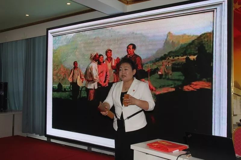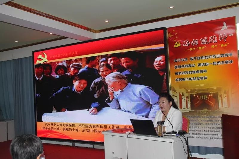 随后我们很荣幸的邀请到了西柏坡纪念馆接待部主管,副研究员,党性教育培训中心主任,河北省博物馆协会会员吴凤菊老师给党员同志们上党课。吴老师在西柏坡工作二十余年,长期致力于西柏坡精神研究与宣传,曾参加参与接待胡锦涛、习近平等党和国家领导人来西柏坡学习考察,她的课注意“寓教于乐、互动式教学”,切合党性教育主题,内容丰富,语言生动,形式新颖,得到了在场全体党员的一致赞许和好评。