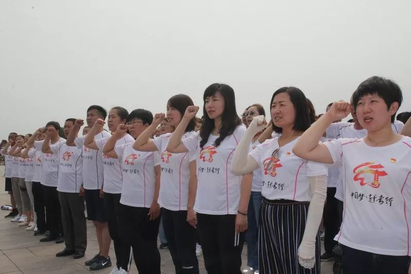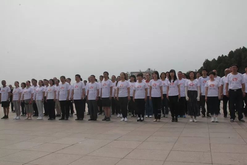 理论学习结束之后,全体党员来到五大领袖雕塑前,开展了庄严肃穆的向领袖献花仪式和重温入党誓词仪式。