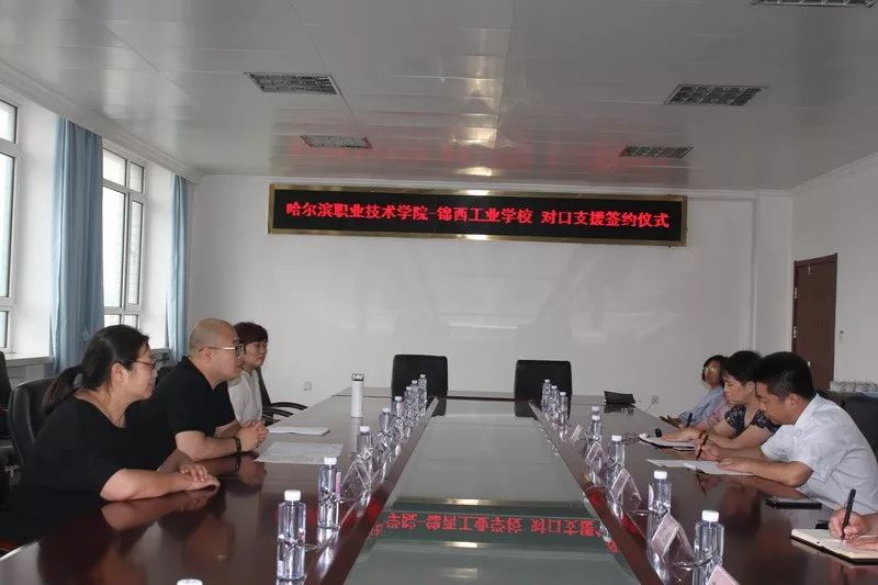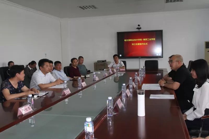 2019年6月13日,哈尔滨职业技术学院任程坤主任等一行四人来到我校参观指导,校长王曙辉、校党委书记苏英新、副校长孟笑红及领导班子成员接待来访。两校领导就本校的基本情况、专业建设、人才培养模式及发展方向等方面做了简要交流。为进一步发挥国家示范(骨干)院校和“双高”院校的带动辐射作用,促进中高等职业教育的协调发展,提升两校的办学基础能力和人才培养水平,经双方协调商定,两校将在内涵发展、专业建设、课程建设、师资培训、教学诊改等方面加强合作,推动两校相互促进,共同提高,建立对口支援关系。