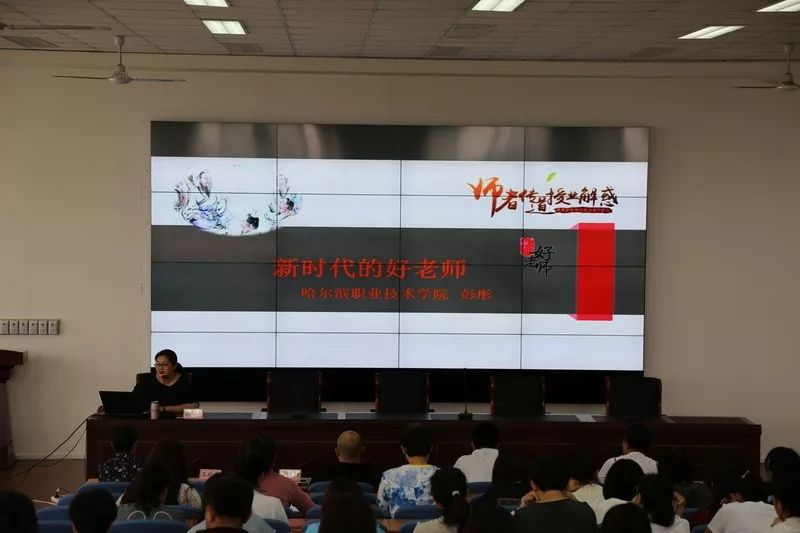 哈尔滨职业技术学院的彭彤主任做了关于《新时代的好老师》专题讲座。师者,传道授业解惑也。彭主任首先明确了“新时代”的深刻意蕴,接下来从师德—“三个牢固树立”、“四个标准”、“四个引路人”、“四个相统一”四方面,明确新时代的好老师应该具备的科学文化水平和思想道德素质,希望两校全体教师都能加强学习、提高修养,做合格的新时代的好老师。