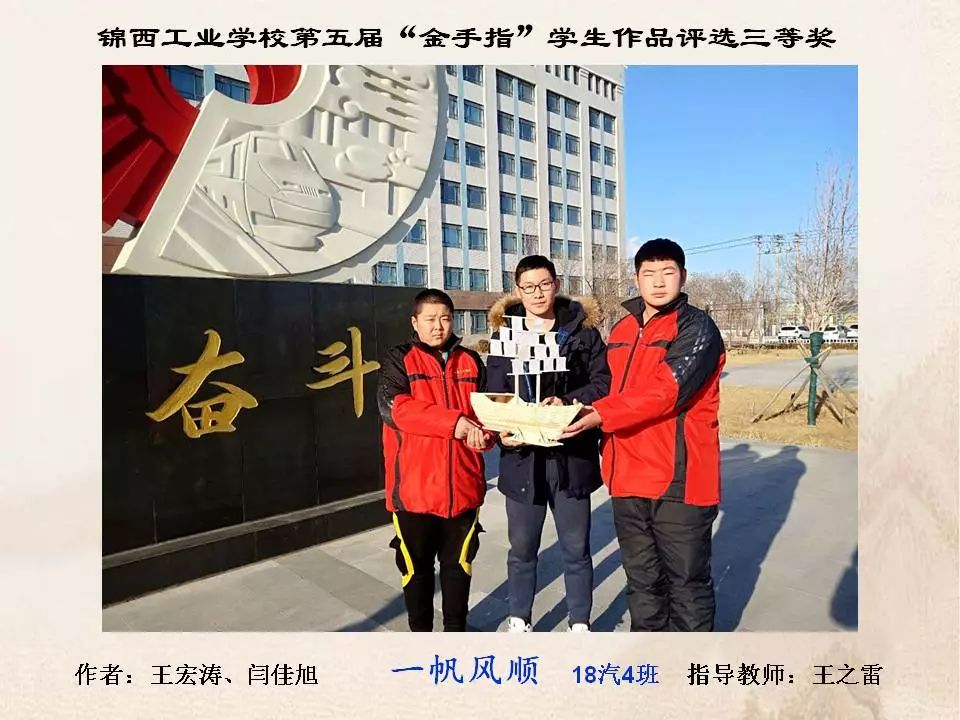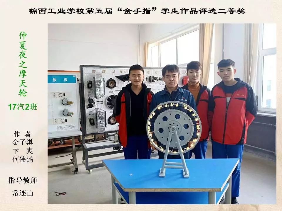 锦西工业学校金手指技能作品设计制作活动是我校的传统品牌活动,每年一次。第五届“金手指”作品大赛的作品涵盖了焊接技术.应用、机械加工技术、汽车运用与维修、船舶制造与维修、电气运行与控制、工艺美术等专业,运用了车削加工、铣削加工、钳工锉削、电工、美工、建筑等技术和工艺。
