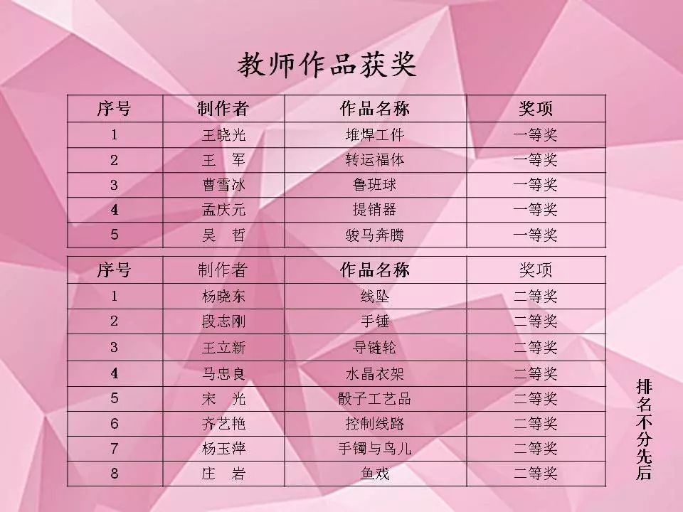 金手指技能作品展现了我校师生的专业技能和创新风采,搭建了师生沟通交流的平台,创造了同行交流、切磋技艺的机会,为我校师生的发展创新开拓了广阔的空间。