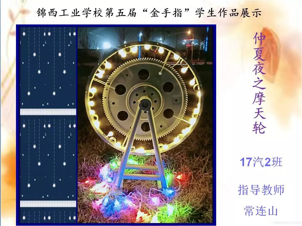 锦西工业学校金手指技能作品设计制作活动是我校的传统品牌活动,每年一次。第五届“金手指”作品大赛的作品涵盖了焊接技术.应用、机械加工技术、汽车运用与维修、船舶制造与维修、电气运行与控制、工艺美术等专业,运用了车削加工、铣削加工、钳工锉削、电工、美工、建筑等技术和工艺。
