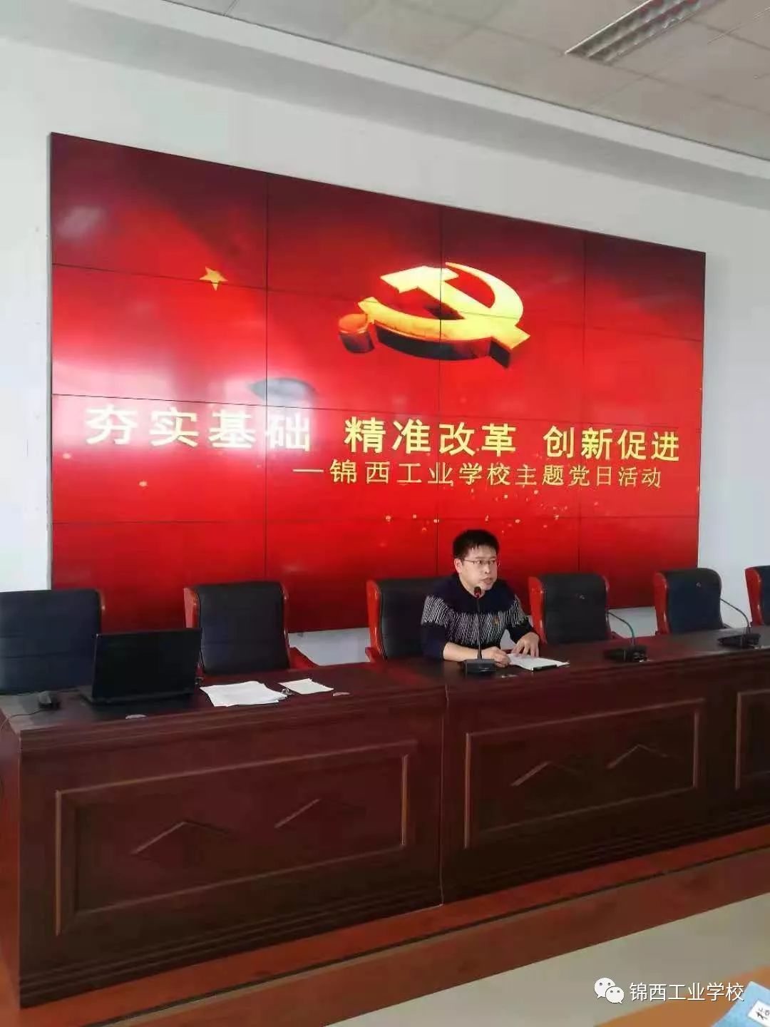 为贯彻落实习总书记在全国组织工作会议上的讲话精神。11月9日,锦西工业学校党委开展“夯实基础 精准改革 创新促进”主题党日活动。