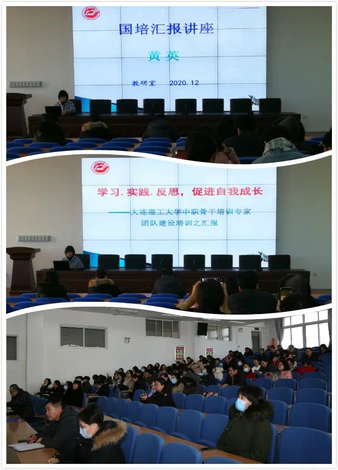 11月15日至21日,黄英主任参加了大连理工大学中职骨干培训专家团队建设培训班的学习。一周的培训学习,收获颇丰,满载而归。她从每天每次学习的纪实感悟和总体心得体会两个方面做了分享。培训老师各具特色,带来的是一堂堂学习的盛宴,引领参训者学习成长。她对职业情怀和理想信念的述说,让我们回想起自己曾有的初心;她讲的培训中的小组合作实践,让我们看到了团队的力量;她对师资培训工作的反思,也让我们思考集体大教研和教研组小教研该何去何从;她希望自己参加培训不仅仅是“感动、激动、心动”,重要的是“行动”,她说“也许我还是原来那个我,但还是希望自己有成长,有改变”,这也同样感染了在座的每一个老师……