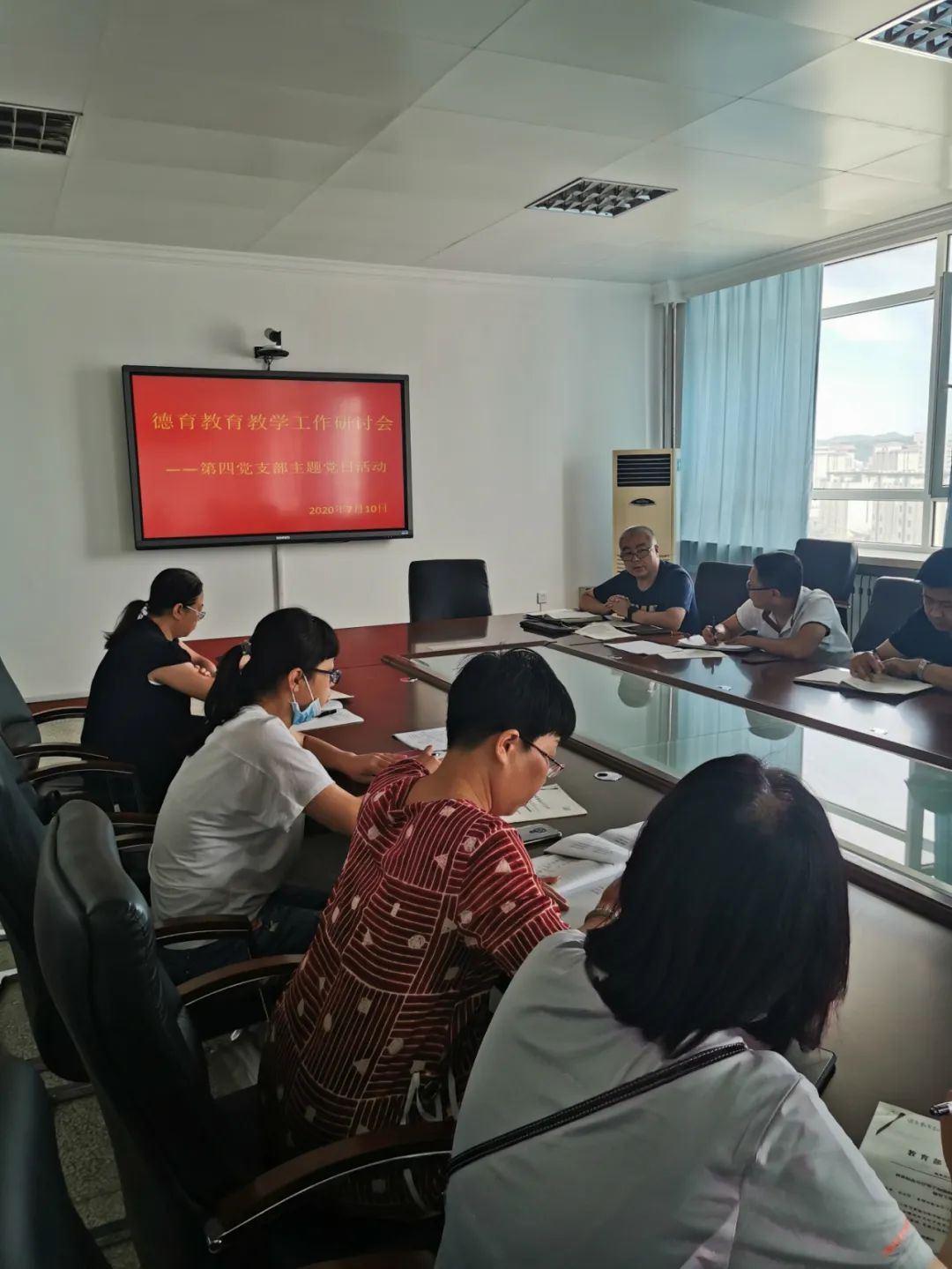 会议由支部书记文化基础科负责人马业兴主持。首先学习了《教育部办公厅关于加强和改进新时代中等职业学校德育工作的意见》的文件精神;然后四支部的党员同志以及学校的各部门的负责人结合实际情况都做了阐述发言。